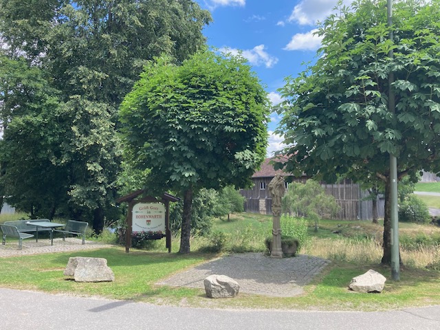 Immer gepflegt und in einem sauberen Zustand zeigt sich die kleine Anlage bei der Nepomukstatue an der Regenbrücke. Gerne sehen es die Mitglieder der GUD, dass die Sitzgruppe in der Anlage sehr oft besetzt ist, seien es Radfahrer, Spaziergänger oder hin und wieder auch Gruppen von jungen Leuten, die sich in der idyllischen Atmosphäre am Regen treffen. Darum wurde diese Anlage vor vielen Jahren aus den Erlösen der Goaßstodfeste finanziert und von den Mitgliedern hergestellt. Große Unterstützung ist uns auch von den Grundstückseigentümern, der Gemeinde Hohenwarth, der Schule Hohenwarth und örtlichen Fachfirmen zugekommen. Auch die Pflege der Anlage übernehmen freiwillige Frauen und Männer der Dorfgemeinschaft. Täglich wird gegossen, und nach dem Rechten gesehen. In meist vierzehntägigem Rhythmus wird gemäht, gekehrt und alles unternommen, damit die Anlage ihren gepflegten Charakter behält.