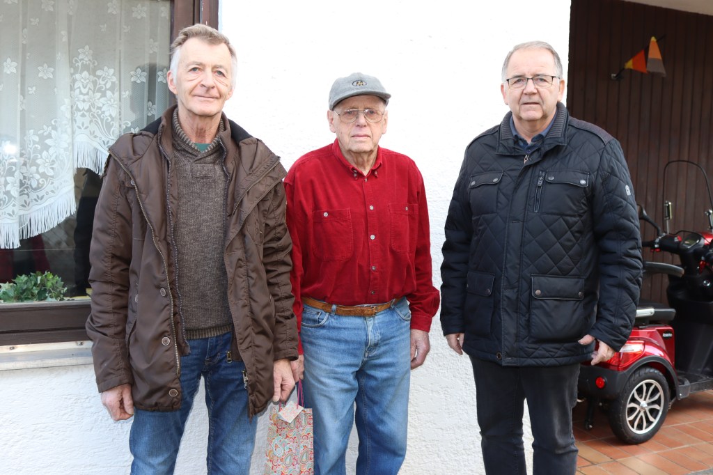 Vorsitzender Josef Pritzl (rechts) und 2. Vorsitzender Alfred Pritzl (links) suchten in an seinem Ehrentag auf und gratulierten ihm im Namen der ganzen Dorfgemeinschaft.