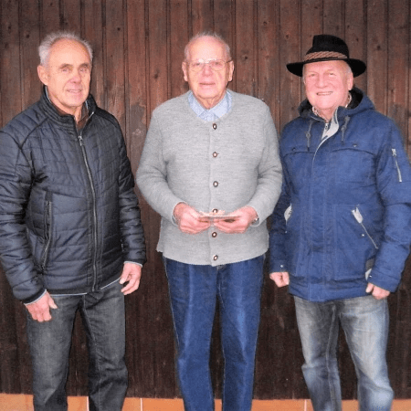 Vorbildliche gemeinnützige Arbeit bescheinigte der neue GUD-Vorsitzender Roland Ettenhofer (rechts) zusammen mit dem neuen Brunnenwart Peter Rieger (links) und überreichte zum Dank einen Gutschein an Josef Heitzer.